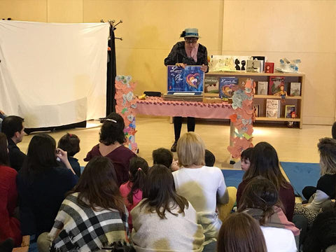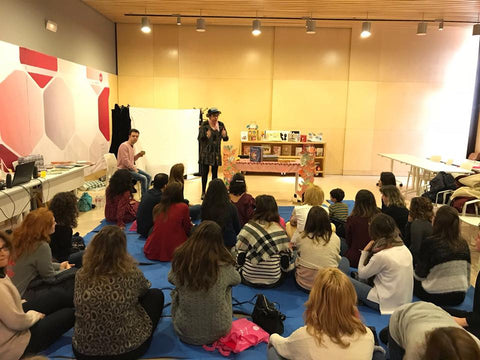 Y, como no podía ser de otra forma, tras la Charla-Inauguración y taller de la Jornada, nuestra editora se metió en uno de sus papeles favoritos, el de cuentista, y llenó la Sala Silex de la Universidad Isabel I de magia en un bosque de palabras que se transformaron en sonidos, música, lunas, estrellas, colores, senderos, emociones.... para contarnos el secreto de “Leyenda de un beso”, el álbum ilustrado del que es autora, con las bellísimas ilustraciones de la argentina Beatriz Blanca Tettamanzi.